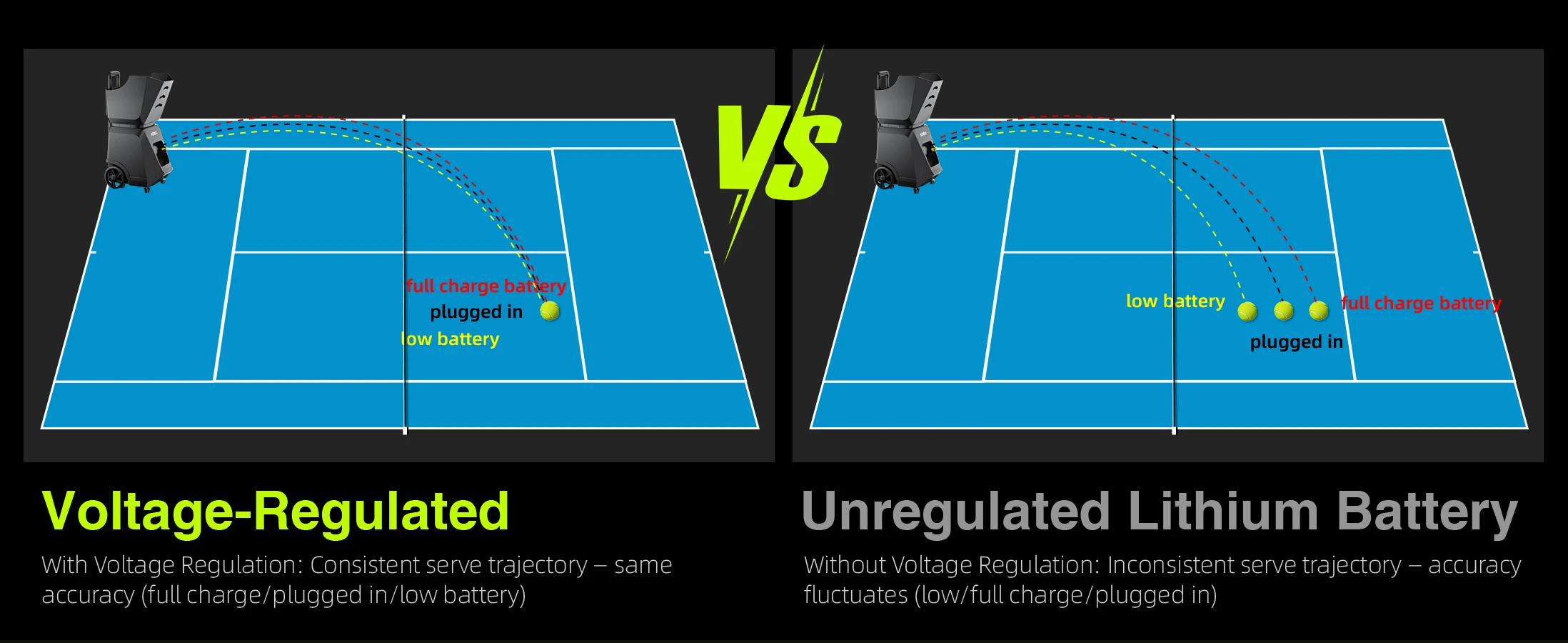 Ball speed:140+KM/H(87+MPH)Battery type:built-in battery